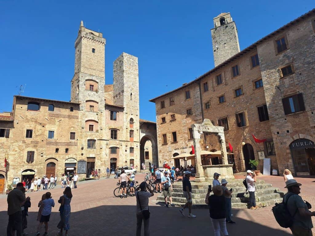 Nach der Fahrt durch malerische Toskana-Landschaften mit riesigen Olivenhainen, Weinbergen sowie den typischen Zypressen-Alleen und Platanen tauchten am nächsten Tag schon bald die imposanten Türme von San Gimignano, dem „Manhattan des Mittelalters“, auf.