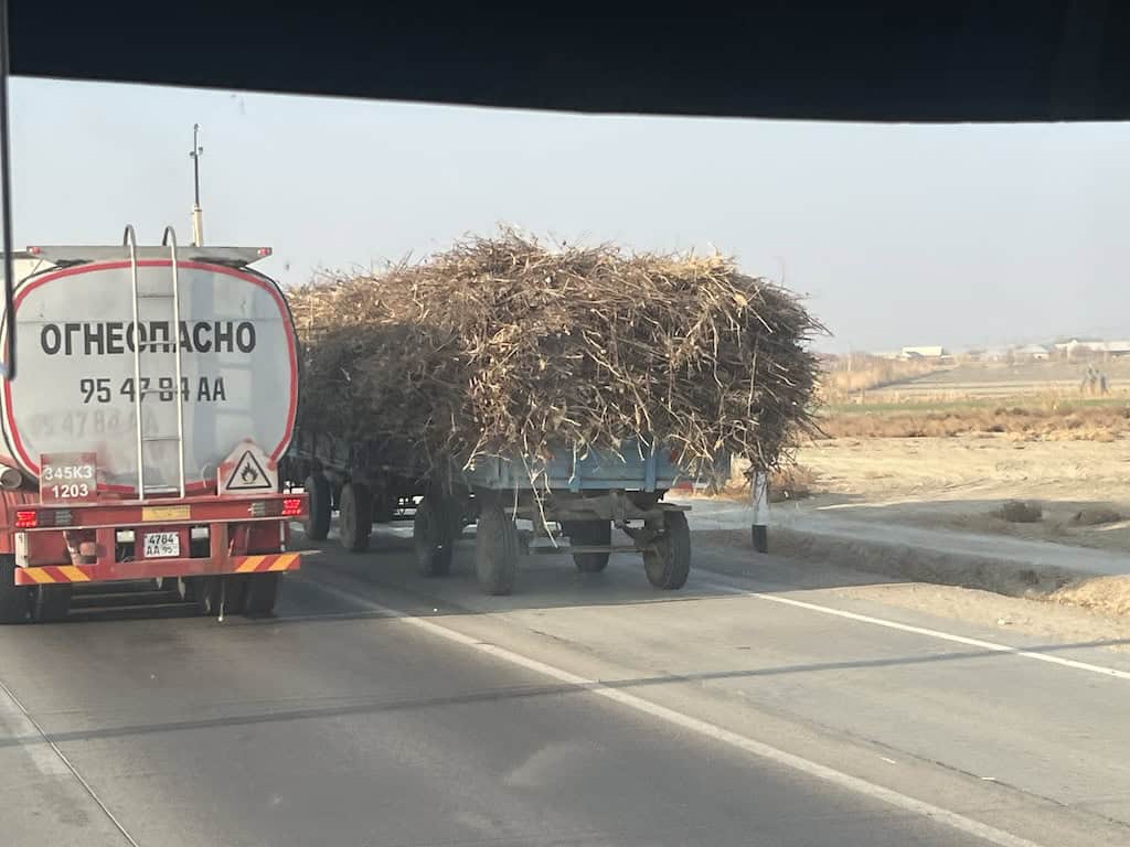 Wir reisen weiter nach Buchara und Chiwa (touristische Details im Reiseführer). Weil es bei allem Fortschritt auch in Usbekistan Verzögerungen gibt, müssen Reisende für die 500 Kilometer von Buchara bis Chiwa weiterhin Bus fahren (der Afrosyb soll nun voraussichtlich 2027 fertig sein). Die Fahrt ist mühsam und dauert sechs bis acht Stunden.