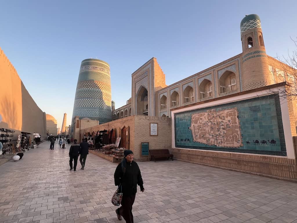 Chiwa lohnt den weiten Weg. Die Oasenstadt mitten in der Wüste ist ein einziges Freilichtmuseum. Umgeben von einer gewaltigen Stadtmauer fühlt sich der Besucher hier wirklich in 1001. Nacht zurückversetzt. Mit Fertigstellung der Bahn-Schnellstrecke werden die Besucherzahlen stark steigen. Mit neuen Hotels und weiteren Bauten bereiten sich die Usbeken, aber auch Unternehmer aus anderen Ländern, darauf vor. Wir nächtigen zum Beispiel in einem sehr schönen Hotel direkt an der Stadtmauer, dass ein Franzose gerade erst vor zwei Monaten eröffnet hat.