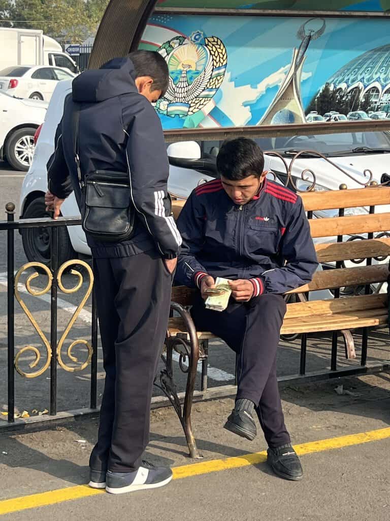 Geld: 1 Euro entspricht 13.600 usbekische Som. Bargeld ist King, kleine Dollar- und Euro-Scheine mitnehmen