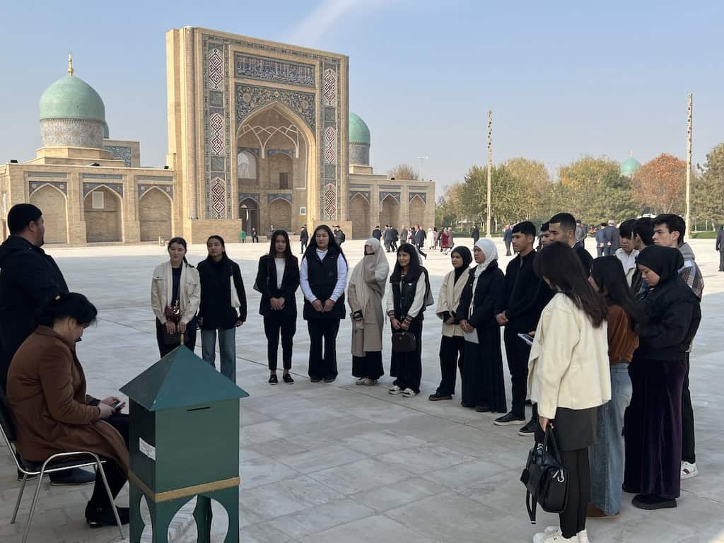 Am nächsten Tag geht es in die moderne Silk Road International University of Tourism and Cultural Heritage. Sie ist neu erbaut, wurde erst 2018 eröffnet. Heute studieren hier 2.982 Studenten, darunter 65 aus dem Ausland. 113 Lehrkräfte gibt es, darunter 15 Professoren. Die Uni ist neu gebaut, die Lehrmittel und Einrichtungen hochmodern. So wachen am Eingang Gesichtsscanner über den Zutritt und Ausgang. Normalerweise fragen Journalisten, aber hier wird unsere Mediengruppe von Fragen der Studierenden bestürmt. Die jungen Menschen sind offen, neugierig, ja wirklich wissbegierig. Die Lage der Uni im Grünen im Samarkand inspiriert Studenten wie Professoren gleichermaßen.