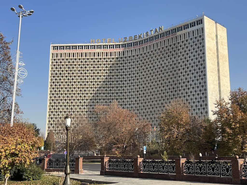 Geschichte – nicht entsorgt: Das „Hotel Usbekistan“ eröffnete in sowjetischem Baustil 1974 als früheres Intourist-Hotel. Es ist bis heute eines der bekanntesten des Landes