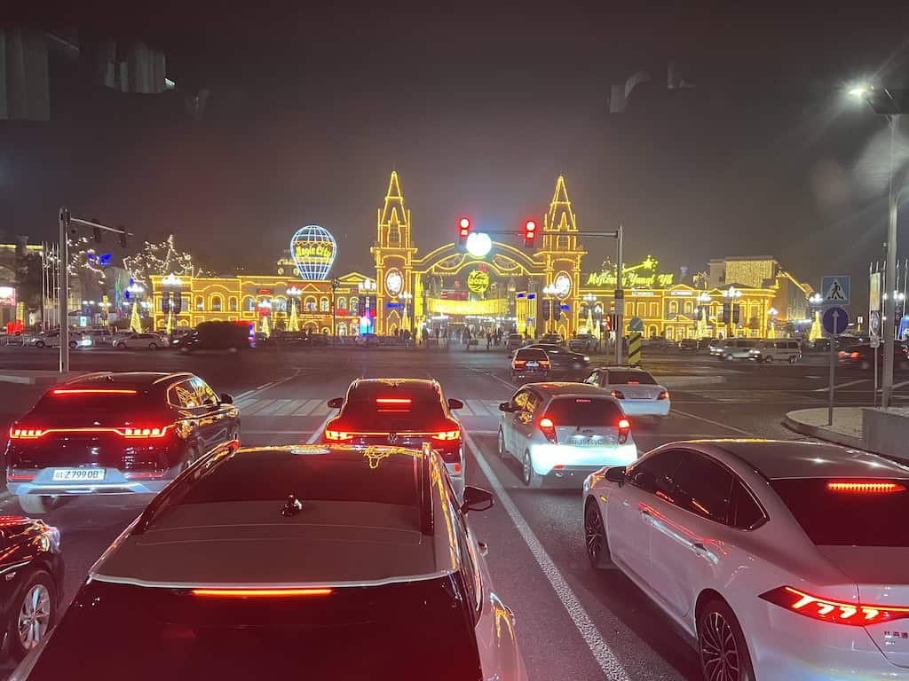 Das Straßenbild ist bunt: Hyundai, Chrysler, General Motors, Tesla, BYD, Volkswagen, BMW, aber auch alte Lada, Wolga und Moskwitsch dominieren das Bild. Benzin kostet 90 Cent/Liter, eine Metrofahrt 17 Cent.