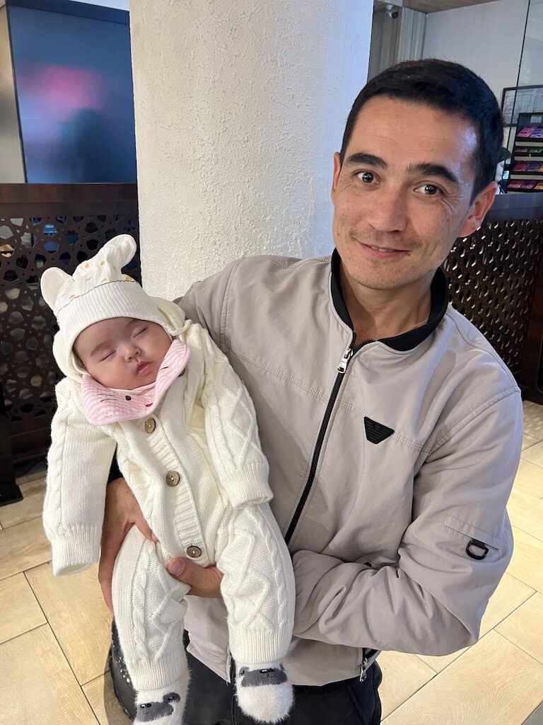 rechts: Mächtig stolz: Vater mit seiner jüngsten, nunmehr dritten Tochter. Sie kam erst vor acht Wochen auf die Welt