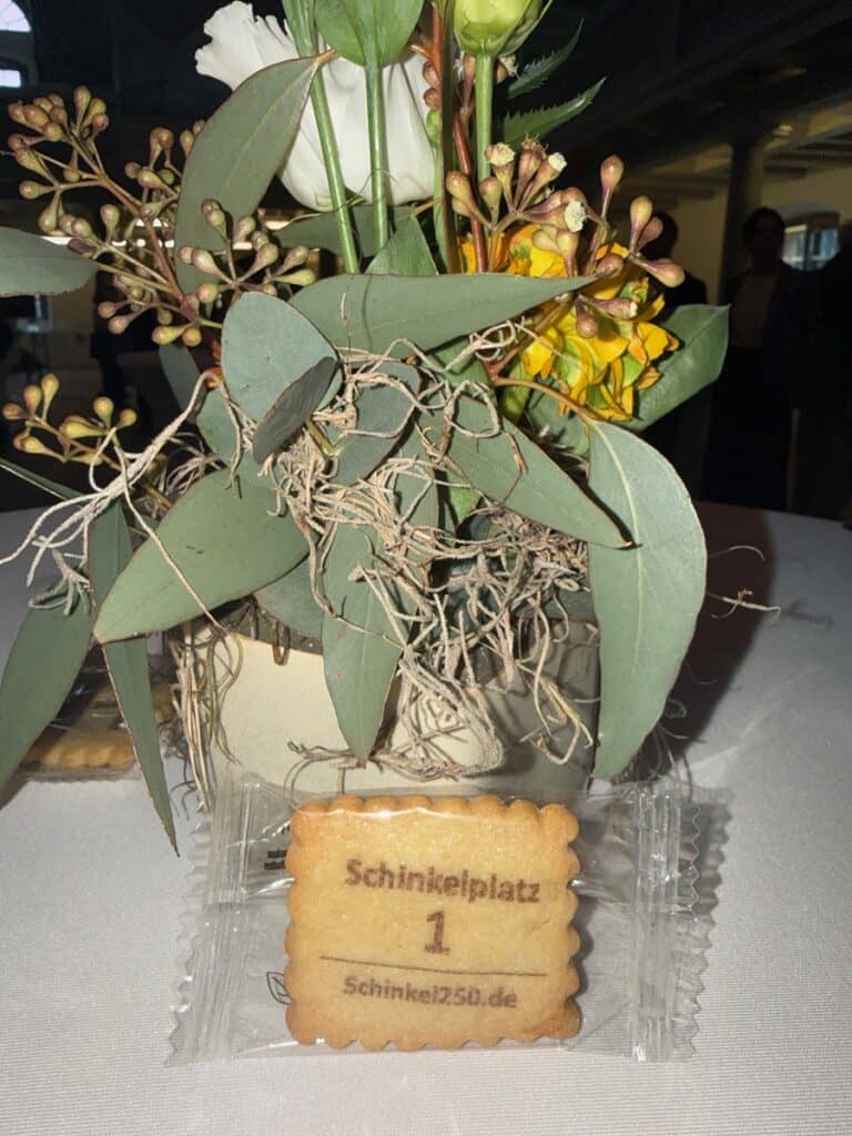 Und eine andere Idee wurde von den Anwesenden gleich konsumiert: Schinkelplätzchen (rechts im Bild) am Schinkelplatz 1.