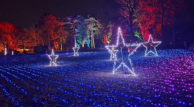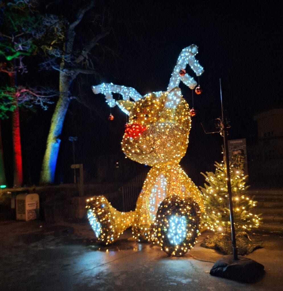 Seit 2019 alle Jahre wieder erfreut der Tierpark in Berlin-Friedrichsfelde zu den Feiertagen und zum Jahreswechsel seine in- und ausländischen Besucher mit einem märchenhaften Lichterzauber. Noch bis zum 10. Januar 2026 kann man in dem mit 160 Hektar größten europäischen Landschafts-Tierpark in den Abendstunden die einzigartige Atmosphäre erleben.