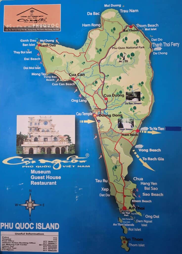 Die gesamte Geschichte der Insel kann man im Heimatkundemuseum der Inselmetropole Duong Dong auf sechs Etagen besichtigen. Es sah wohl schon bessere Zeiten, lohnt aber einen Besuch. Das Museum befindet sich in einem historischen Gebäude im Zentrum der Stadt. Von der Terrasse der obersten Etage hat man einen großartigen Ausblick auf die Stadt und das Meer.