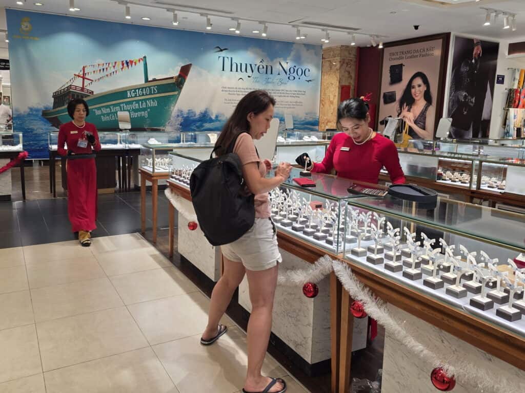 Der Name ist in zweierlei Hinsicht Programm. Einerseits ist Phu Cuoc unbestritten eine Perle auf der Tourismus-Karte Vietnams. Gleichzeitig spielt Vietnam auch in der Perlenzucht weltweit in der ersten Liga. Neben der Halongbucht unweit von Hanoi spielt die Insel Phu Cuoc in diesem Geschäft eine entscheidende Rolle. Die Korallenriffe rund um die Insel bieten hervorragende Möglichkeiten. So überrascht es nicht, daß es vor allem an der Westküste auf dem Meer unweit der Insel mehrere solcher Perlenfarmen gibt. Man kann sie besichtigen.
