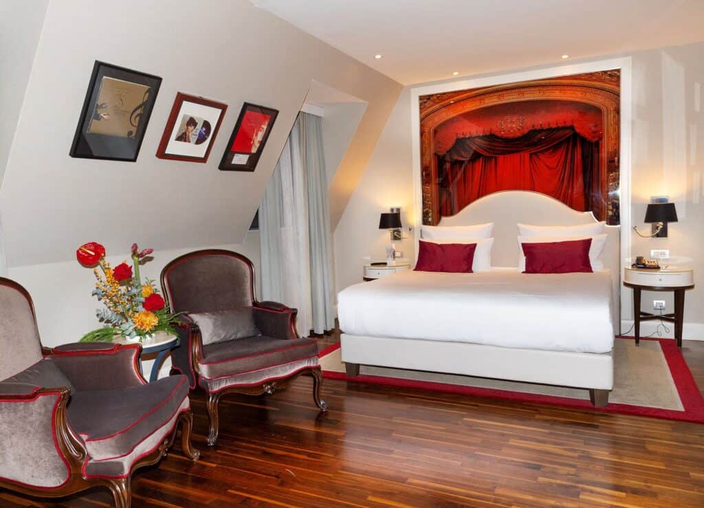 Auf die Geschichte des klassischen Gebäudes als ehemaliges Kostümhaus der Oper weist einiges hin: zum Beispiel das Bild eines roten Opernvorhangs über dem Bett oder liebevoll restaurierte Details.